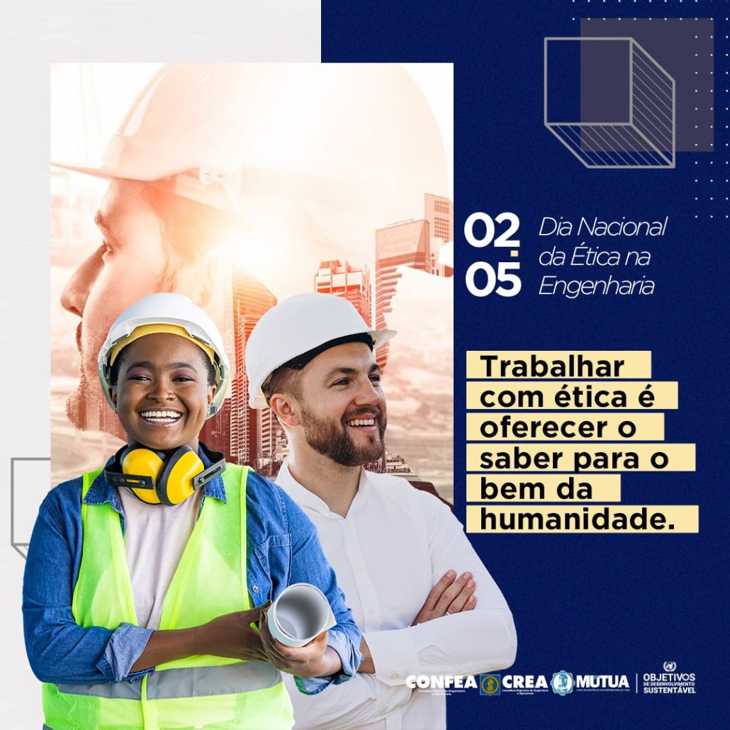 Trabalhar na engenharia é buscar o equilíbrio perfeito entre o conhecimento técnico e a ética profissional. Afinal, as profissões do Sistema envolvem a segurança, o bem-estar e o desenvolvimento em vários âmbitos da nossa sociedade. Uma profissão de honra, que contribui ativamente para o nosso progresso. Hoje homenageamos todos os profissionais que mantém o legado da ética na nobre missão de atuar na engenharia.