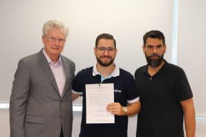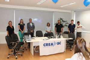 No último sábado (16), a Comissão Acadêmica Estadual do CREAjr-SC, realizou a primeira reunião de 2019, na CREDCREA, em São José, com objetivo de debater as ações, projetos e o planejamento do ano. O evento contou com a posse dos novos coordenadores regionais. Presença do presidente do CREA-SC, Eng. Agr. Ari Geraldo Neumann e do conselheiro Eng. Eletric. José Augusto da Matta Guedes, coordenador da Comissão CREAjr-SC. Também participaram o coordenador geral do programa, Eng. Mec. Rodrigo Caleffi Alves Marques e a coordenadora estadual, Camila de Oliveira Inácio, acadêmica do curso de Engenharia de Alimentos, do IFC Concórdia.