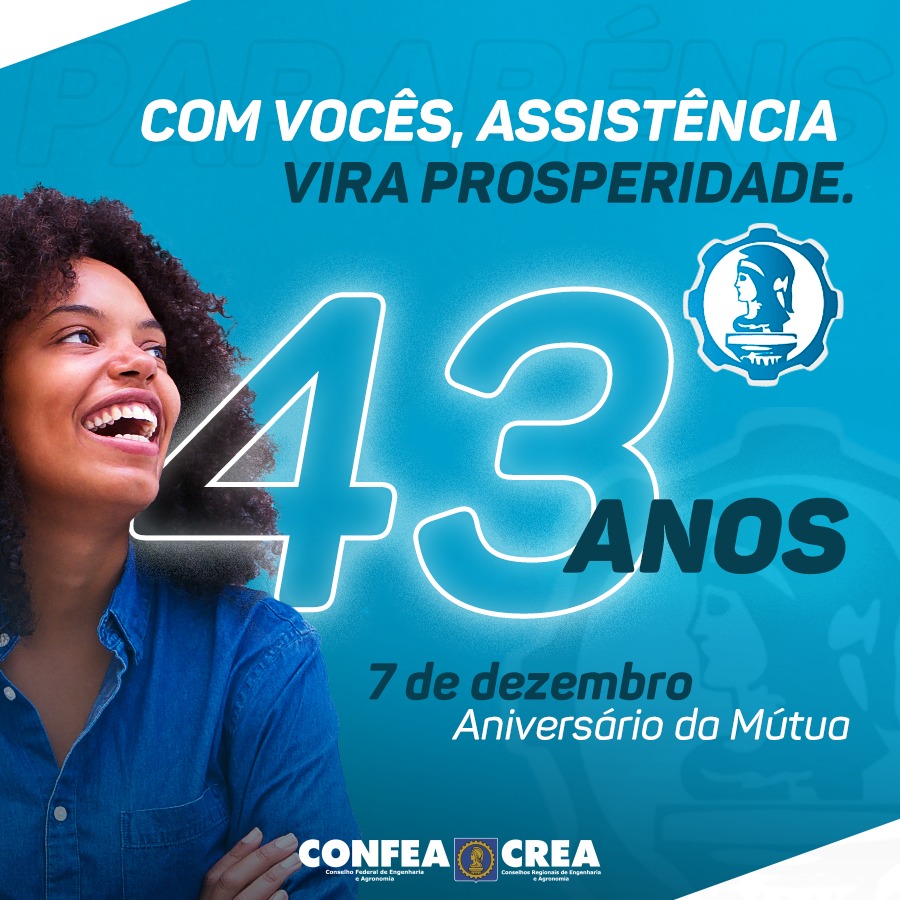 Hoje celebramos os 43 anos de existência da Caixa de Assistência dos Profissionais do Crea. Seu principal objetivo é oferecer benefícios sociais, previdenciários e assistenciais. Agradecemos por transformar diariamente a vida de milhares de profissionais do Sistema Confea/Crea.