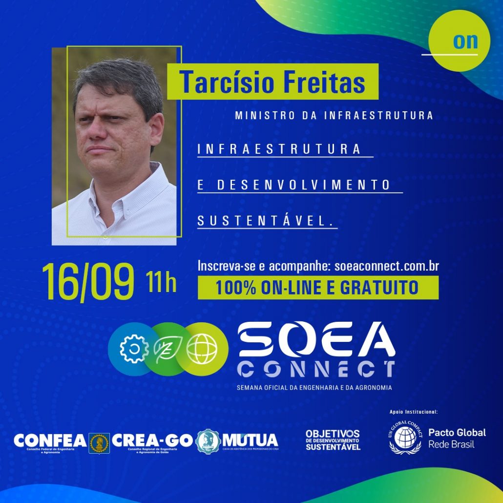 O Ministro da Infraestrutura, Tarcísio Freitas está chegando na SOEA CONNECT para compartilhar todo seu conhecimento e experiências quando o assunto é Infraestrutura e Desenvolvimento Sustentável.
