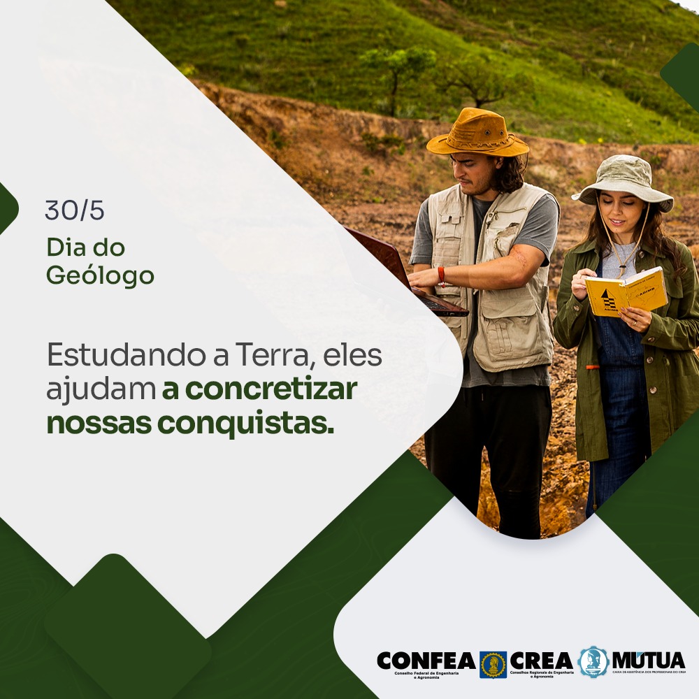 Neste dia 30 de maio, nossa homenagem vai para todos os geólogos do Sistema Confea/Crea. Seu trabalho é essencial para toda a sociedade.