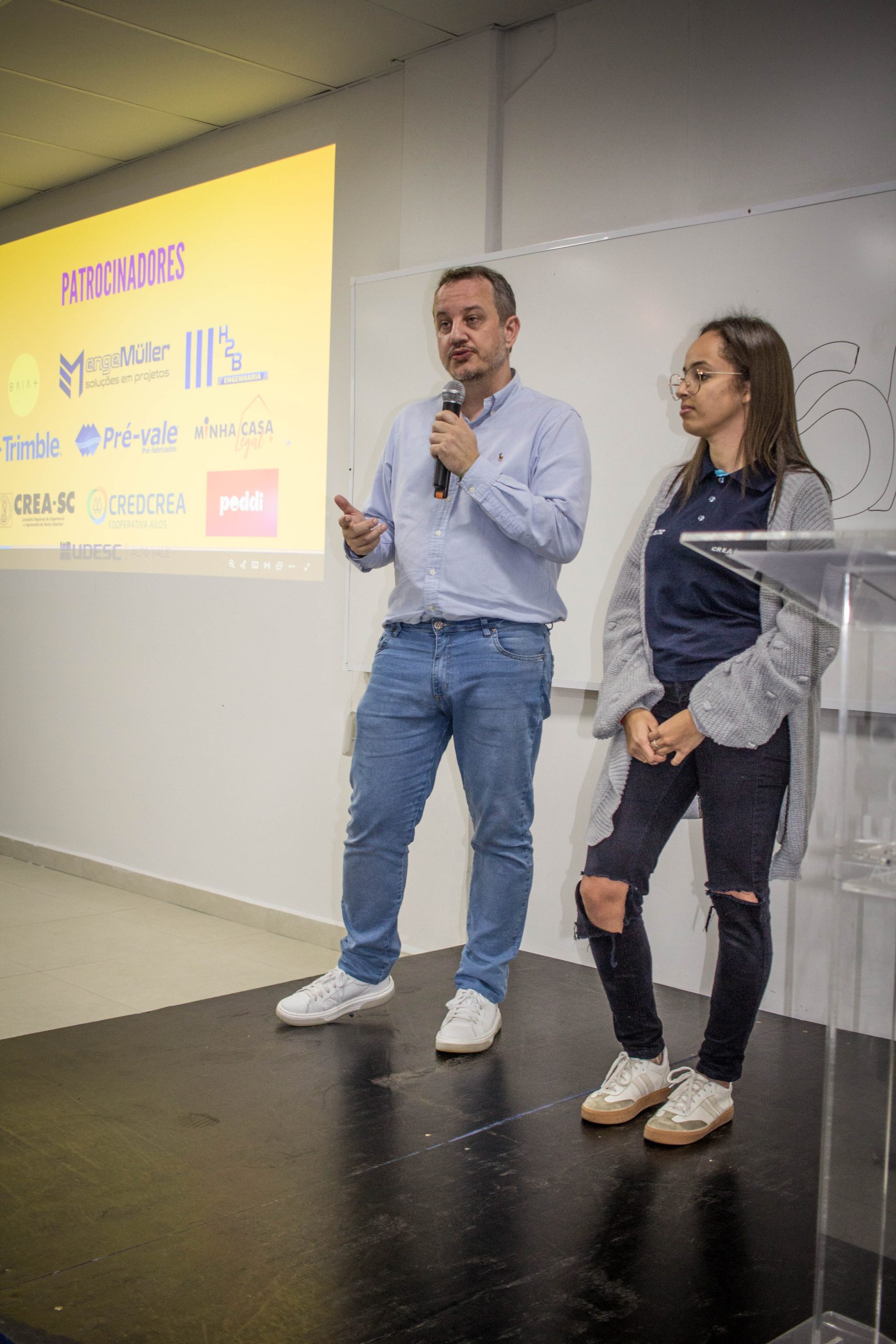 Rodrigo Espíndola, assessor do CREAjr SC e Anna Beatriz de Azevedo, coordenadora regional de Rio do Sul.
