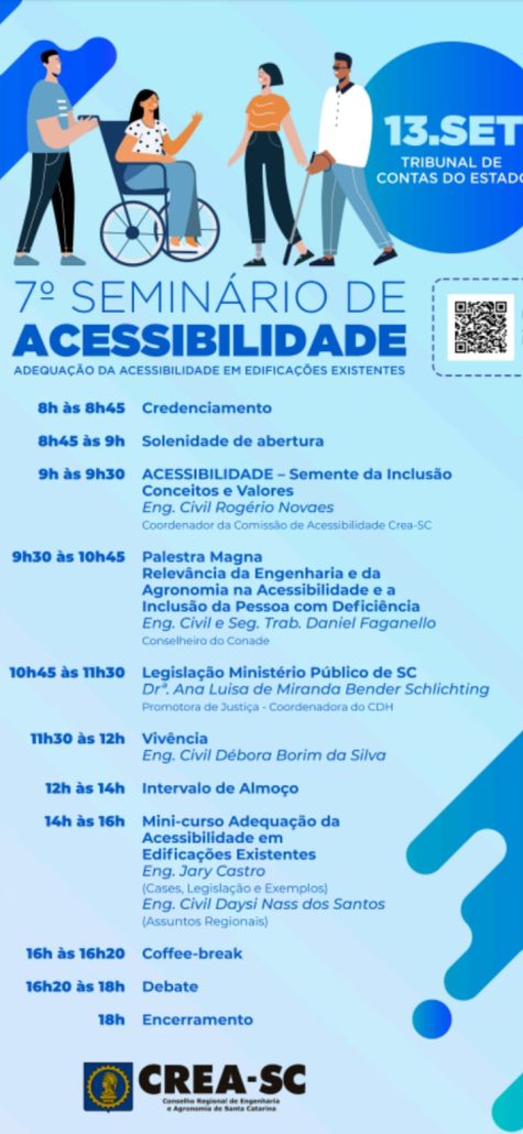 O CREA-SC promoveu nesta quarta-feira (13), o 7º Seminário de Acessibilidade, no Tribunal de Contas do Estado, em Florianópolis, tendo como tema principal a “Adequação da acessibilidade em edificações existentes”.