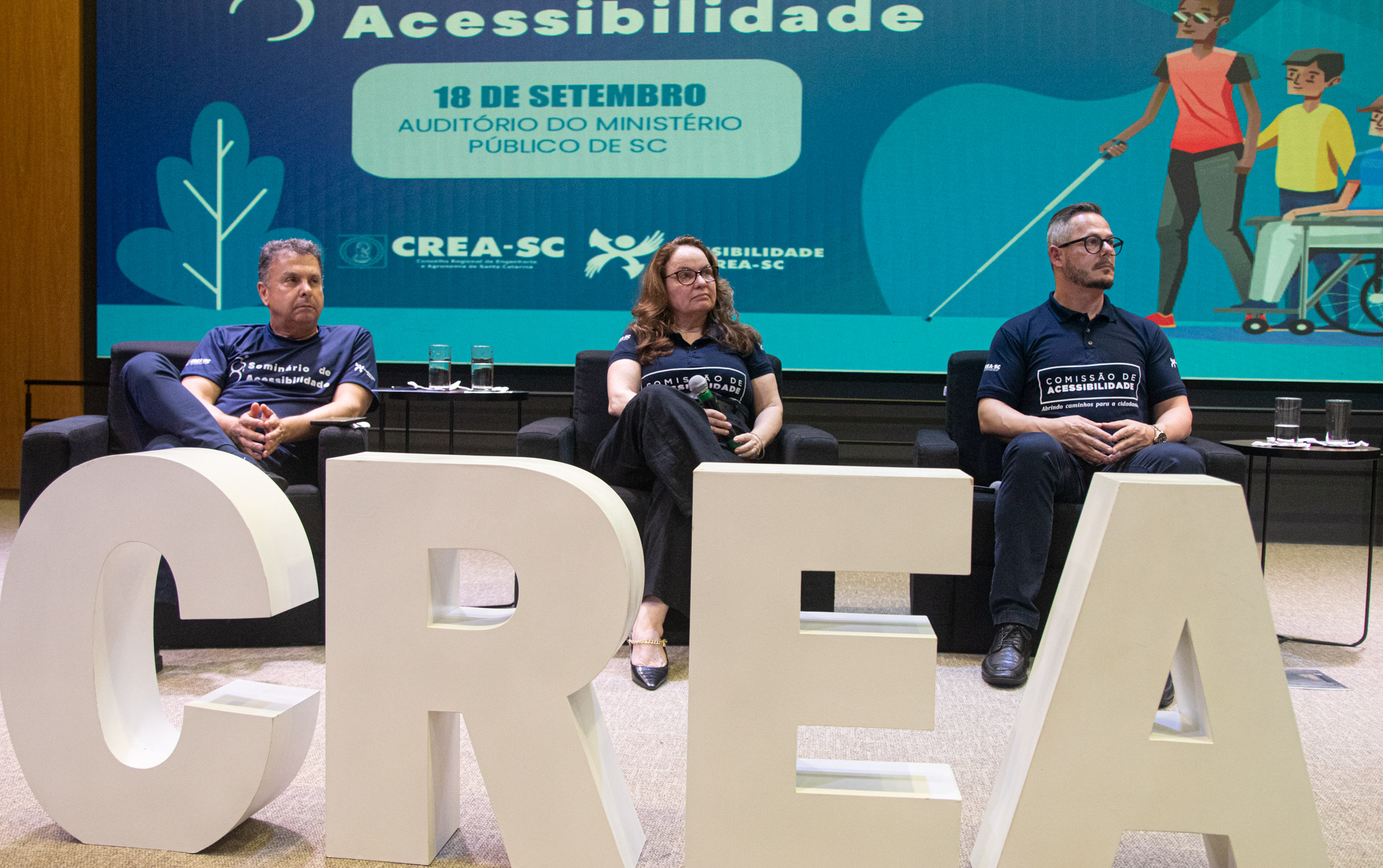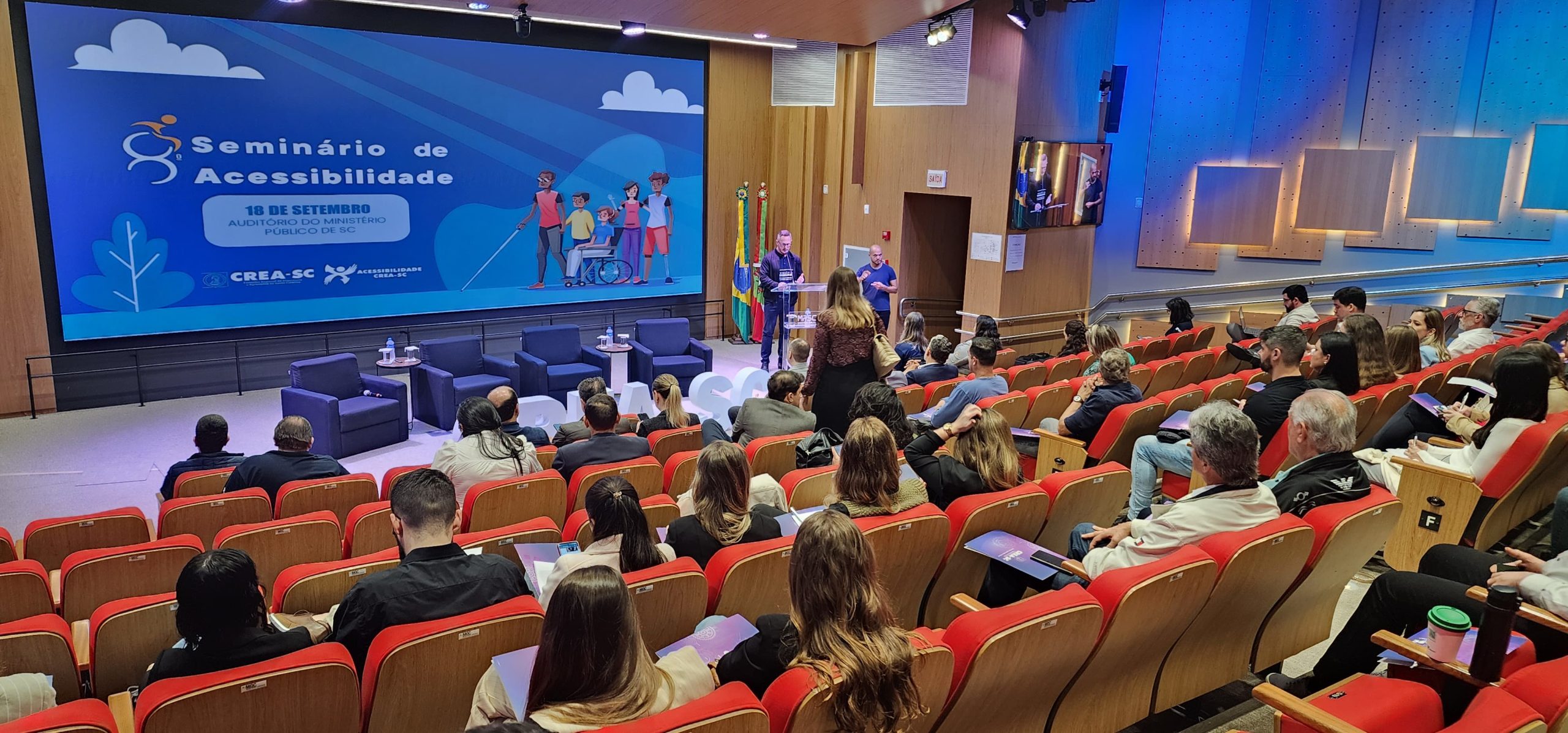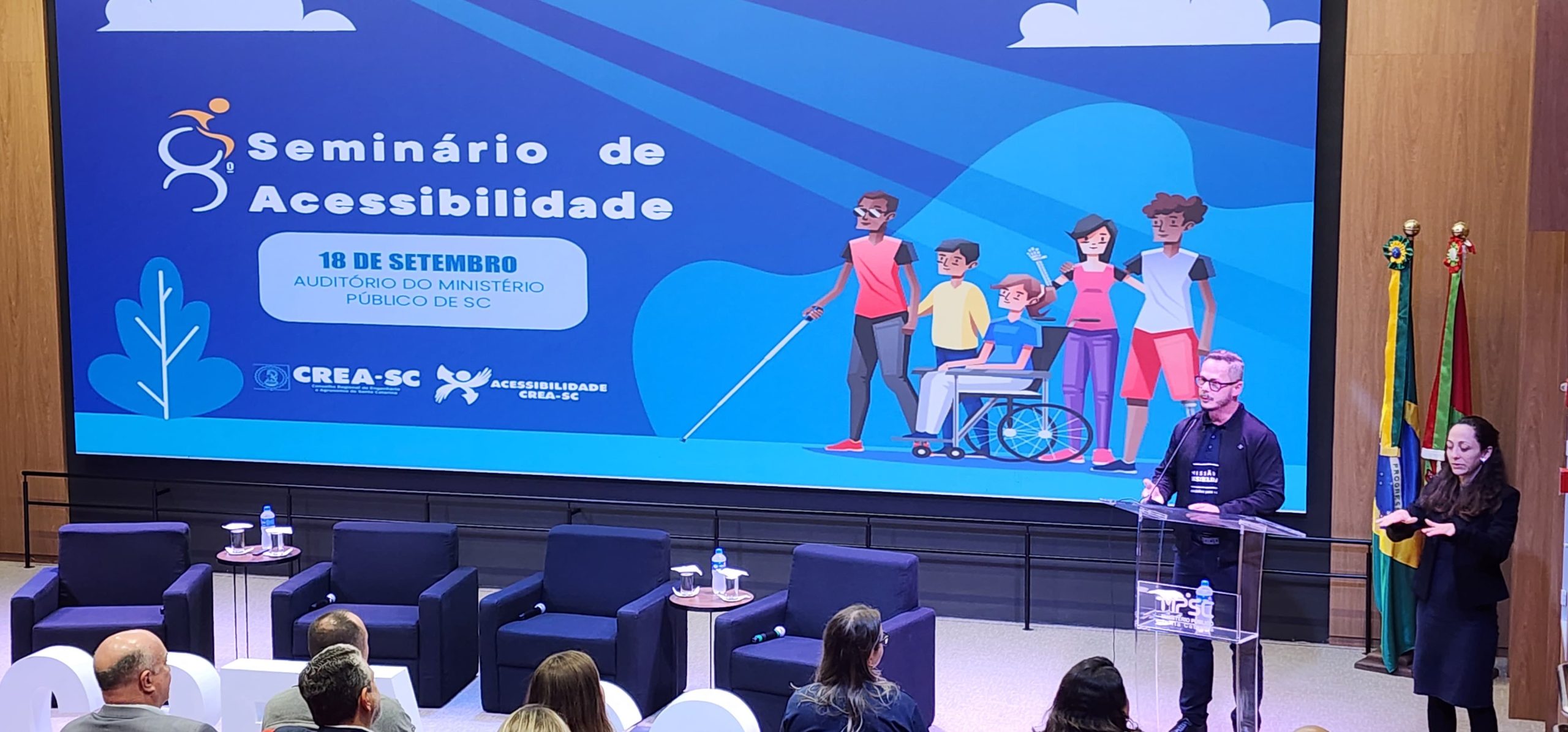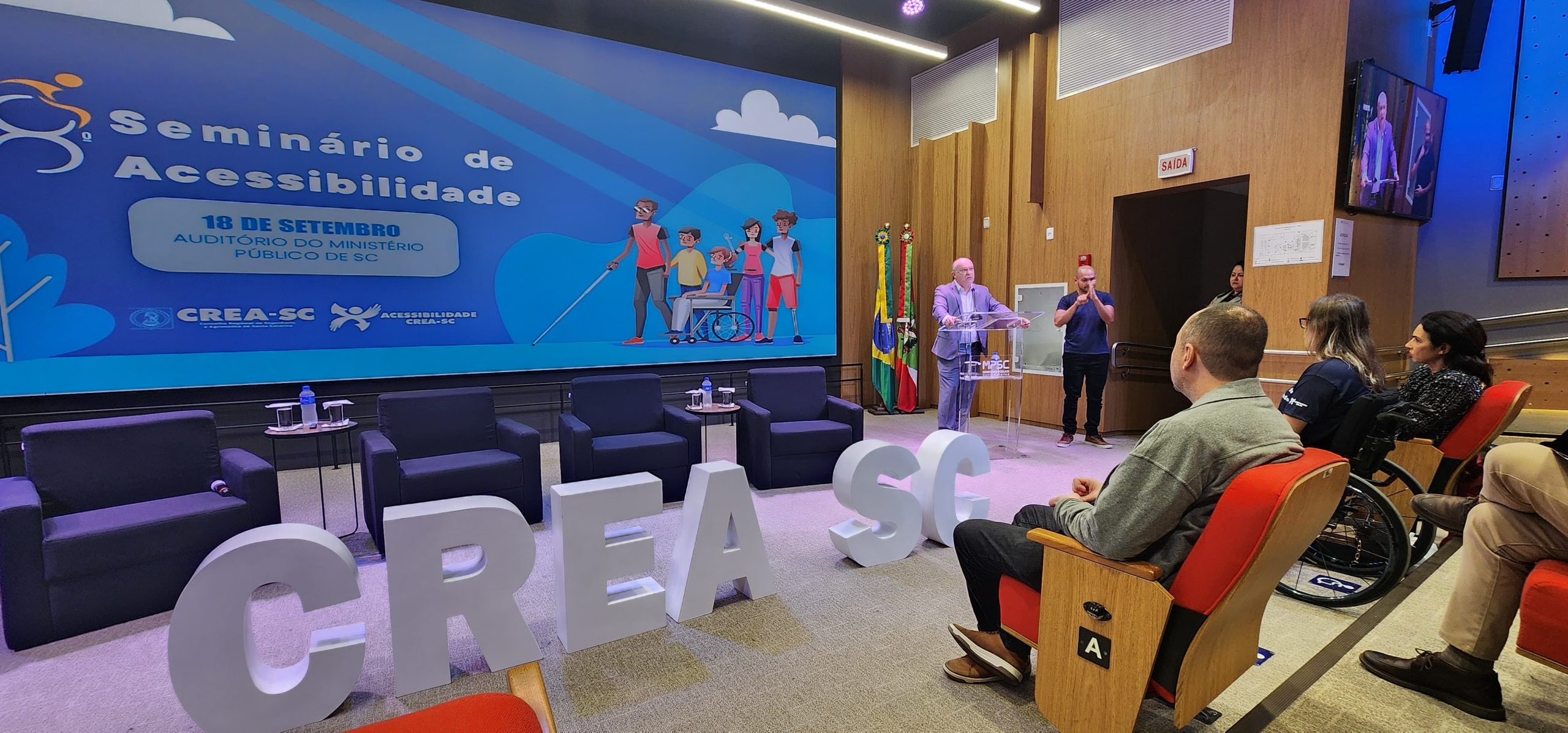 O Crea-SC realizou hoje (18), a 8ª edição do Seminário de Acessibilidade no auditório do Ministério Público de Santa Catarina. O evento alerta para a necessidade urgente de adequação de espaços e obras públicas visando à inclusão das pessoas com deficiência (PCD).