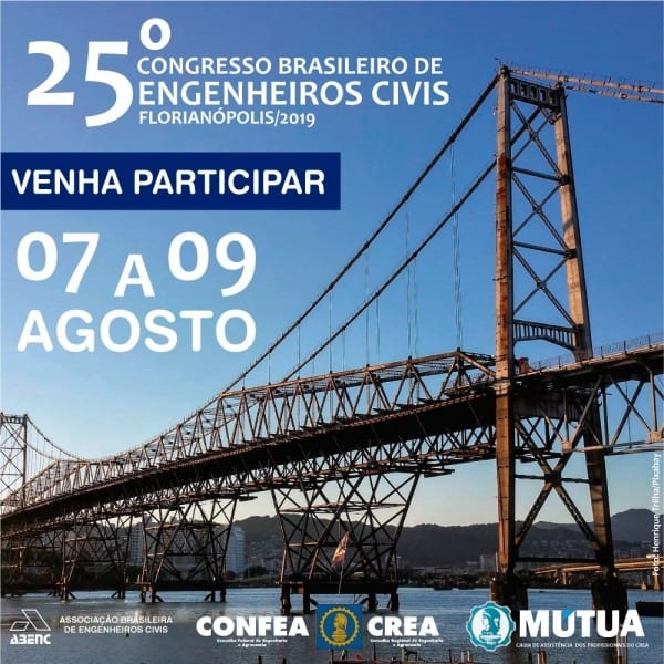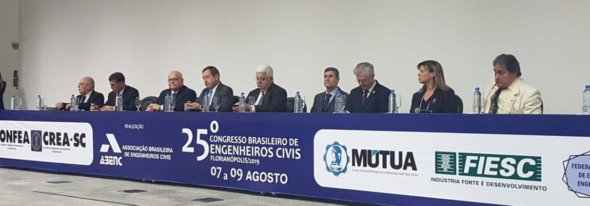 O Congresso que vai até o dia 9 de agosto é promovido pela Associação Brasileira de Engenheiros Civis (Abenc), com apoio do CREA-SC e do Sistema Confea/Crea e Mútua.