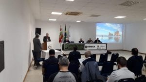 Com participação expressiva de profissionais da área tecnológica, representantes de entidades de classe, do CREA-SC e do Confea, o evento colocou em pauta as Pls 3924/2012 e 3603/2017. Presença do presidente do Conselho, Eng. Ari Geraldo Neumann.