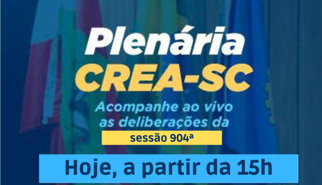 A 904ª Reunião Ordinária do Plenário do CREA-SC, acontece nesta sexta-feira, 18 de março, a partir das 15h, com transmissão ao vivo pelo canal youtube.com/creasc.