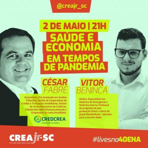 No sábado (02/05) contaremos com a participação do especialista em Medicina de Emergência e Medicina Interna @vitorbeninca e do especialista em Economia @cesarfabre01, da parceria com @credcrea.ailos.
