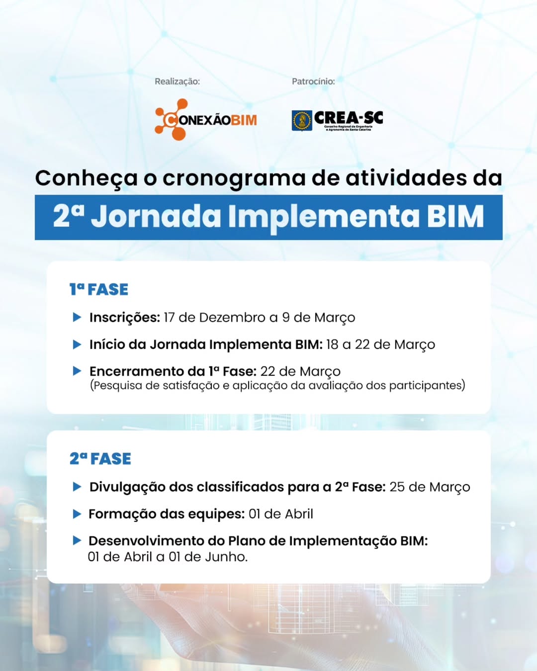 Os 100 melhores da Fase 1 seguem para a Fase 2, onde serão mentorados para criar um plano de implementação BIM, para empresas reais da área da construção civil, escolhidas pela Conexão BIM.