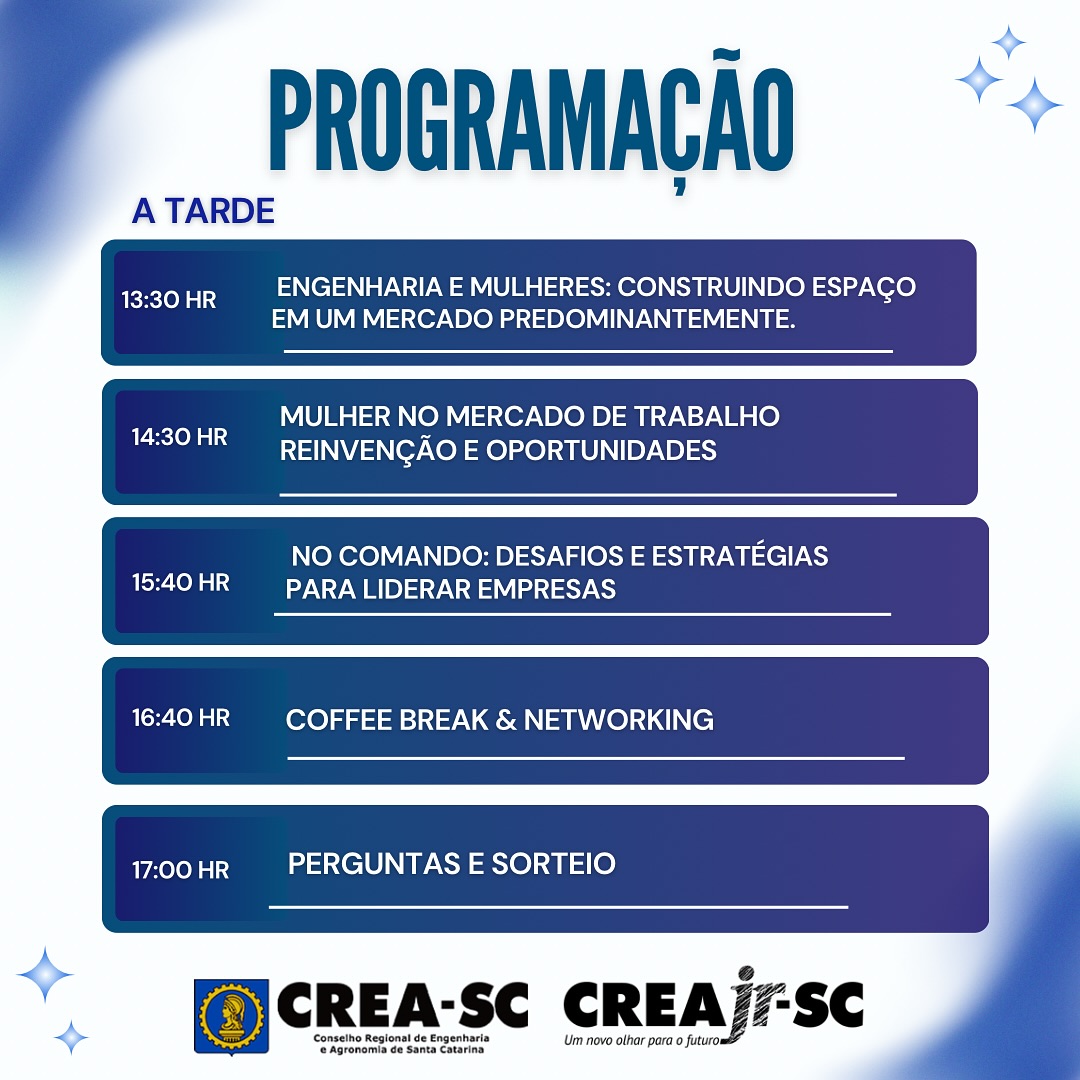 – Palestras impactantes sobre engenharia, liderança e oportunidades de reinvenção.