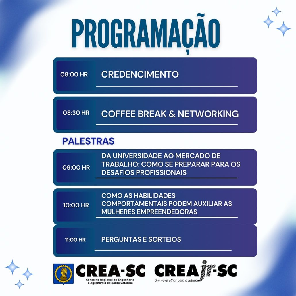 – Momentos de networking para fortalecer conexões.