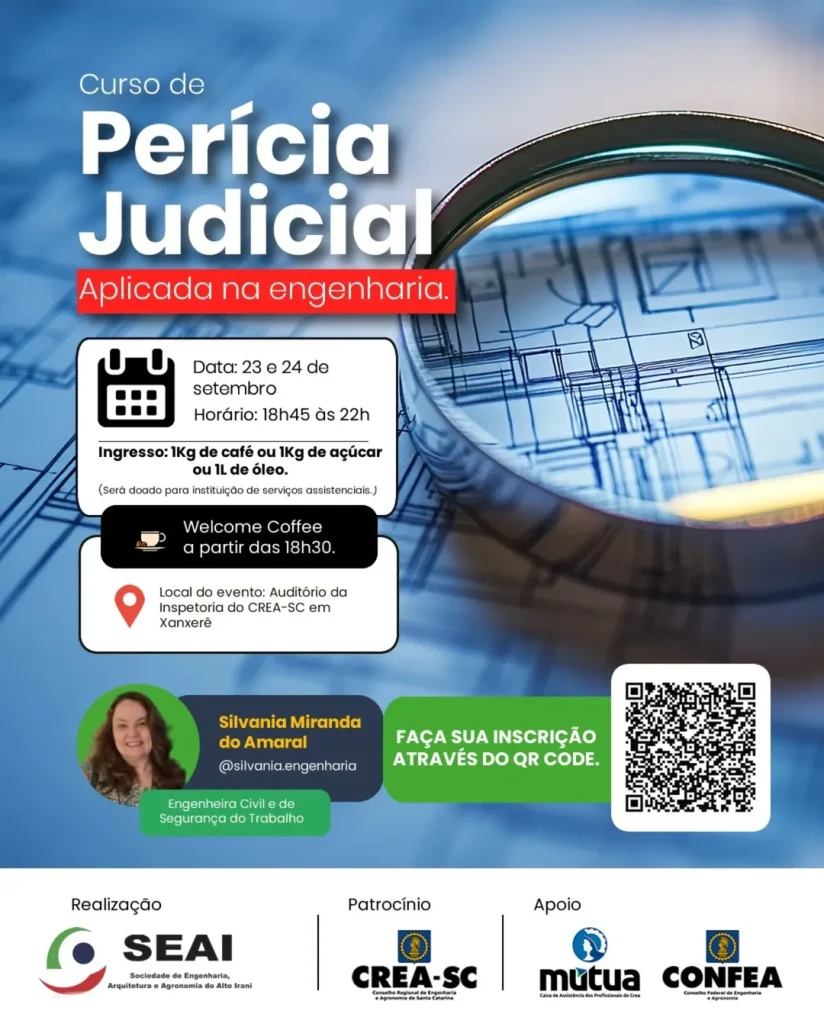 O SEAI realiza mais um grande curso para profissionais e acadêmicos interessados em atuar com perícia judicial.