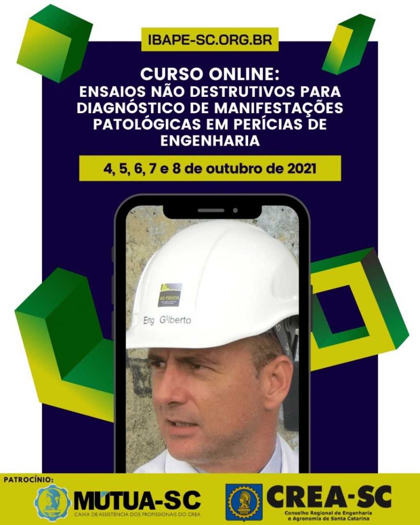 Para mais informações e inscrições acesse: https://ibape-sc.org.br/curso/curso-ensaios-nao-destrutivos-para-diagnostico-de-manifestacoes-patologicas-em-pericias-de-engenharia/
