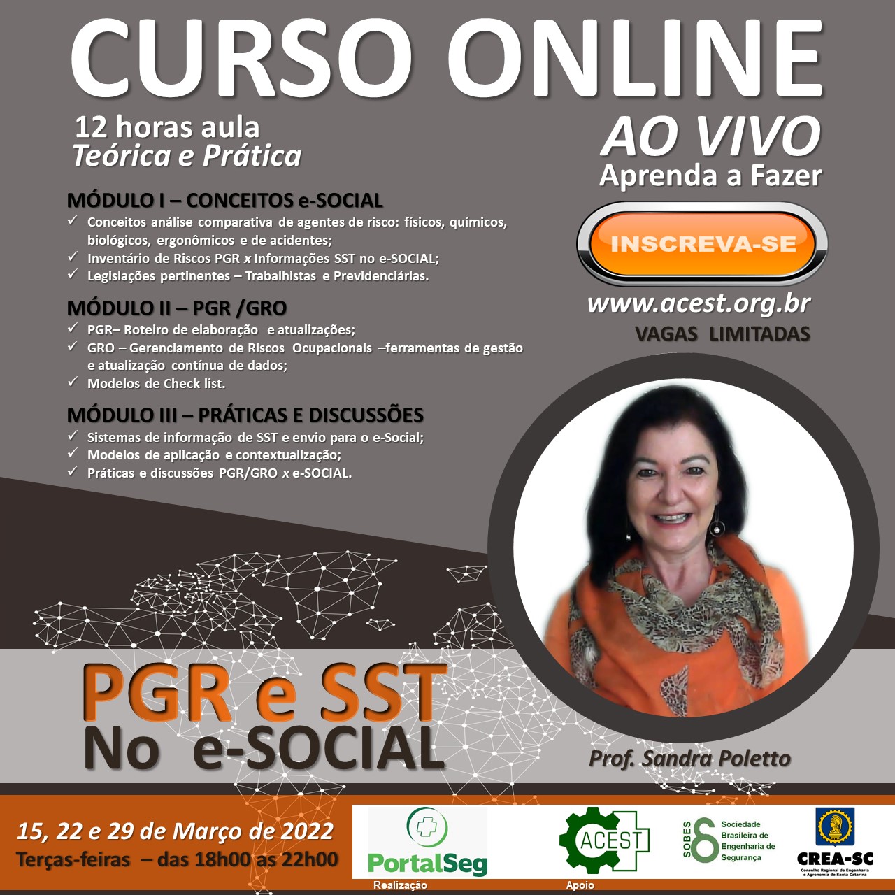 INSCRIÇÃO no site https://ead.portalsegsst.com.br/curso/pgr-e-sst/acest/