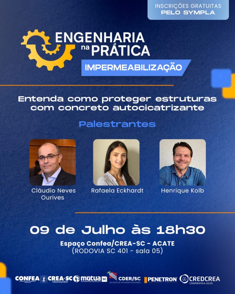 O tema? Impermeabilização com concreto autocicatrizante — direto ao ponto e super relevante pra quem atua na construção.