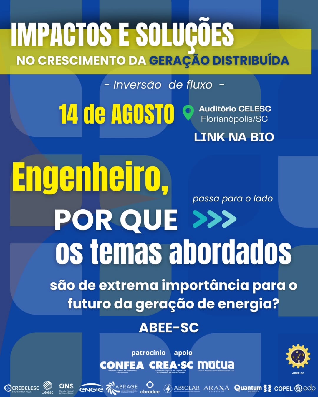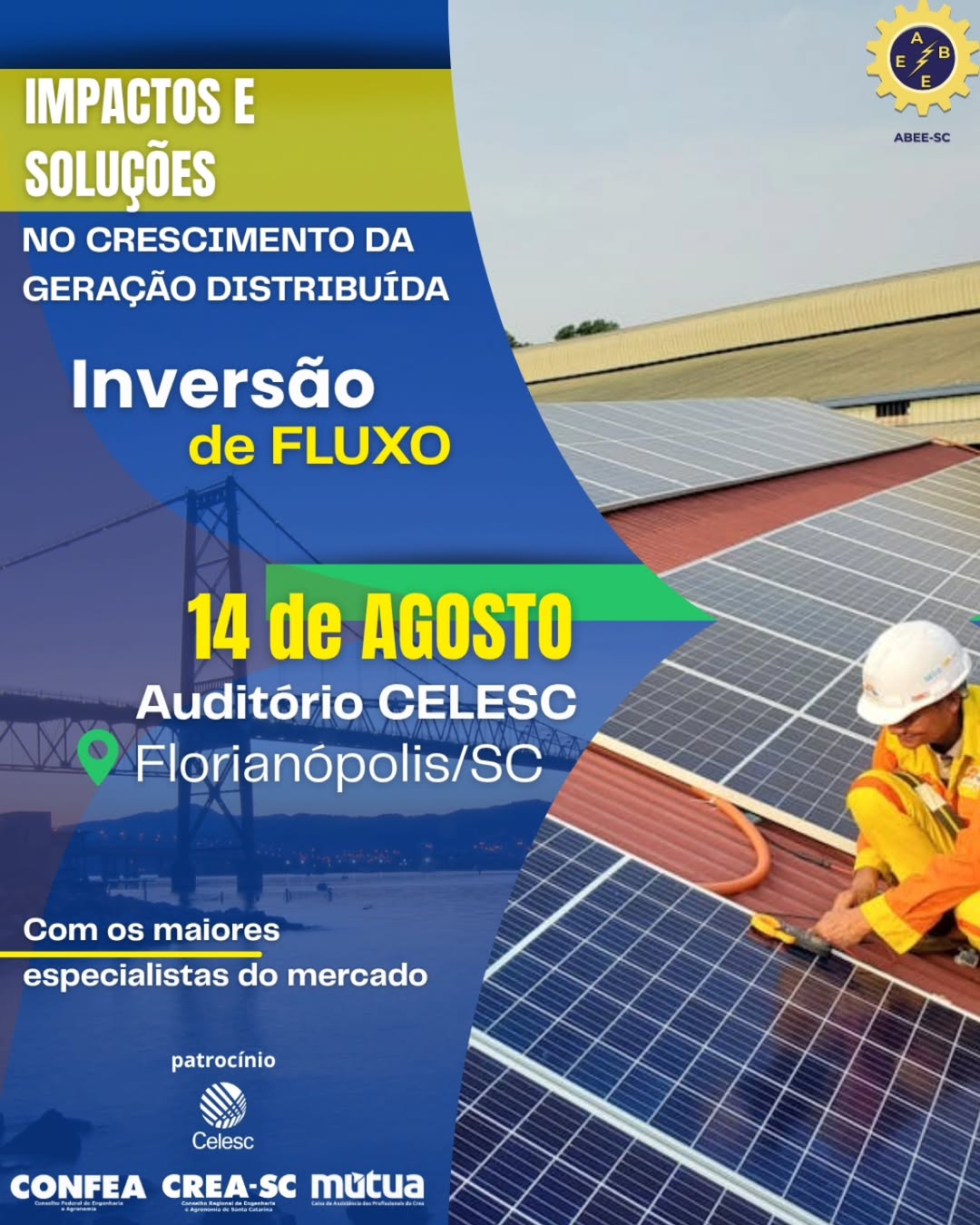 A ABEE-SC convida você para um evento essencial sobre os impactos e soluções no crescimento da geração distribuída, com foco especial na inversão de fluxo