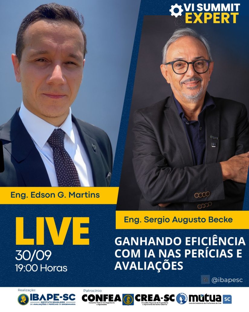 O IBAPE-SC convida para a live com o Eng. Edson G. Martins, especialista em Inteligência Artificial aplicada à engenharia
