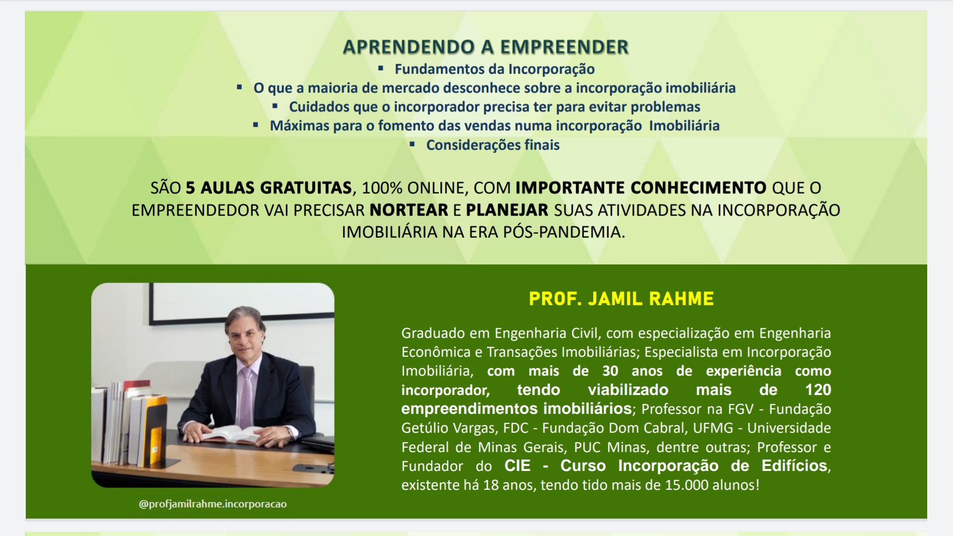 Informações e inscrições: www.vetreinamentos.com.br/Treinamentos/incorporacao-imobiliaria-aprendendo-a-empreender.pdf