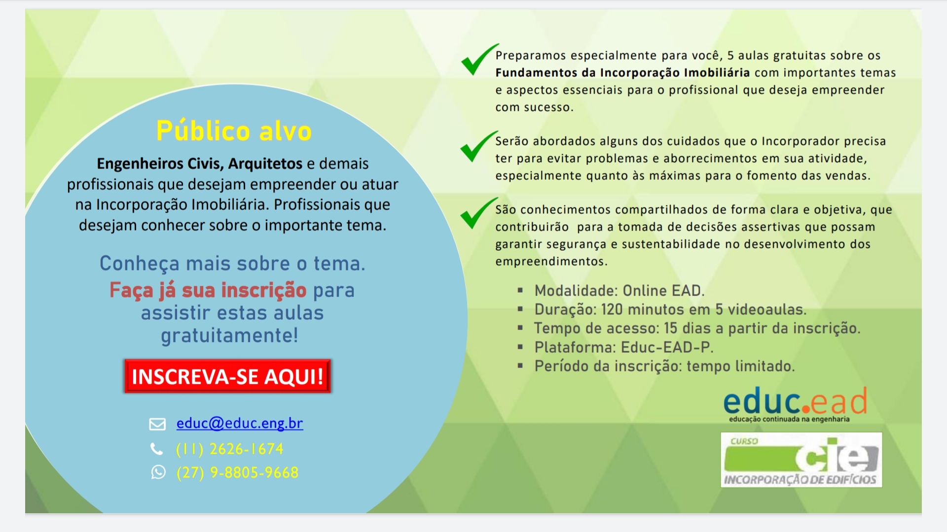 Minicurso Gratuito: Incorporação Imobiliária – Online via EAD