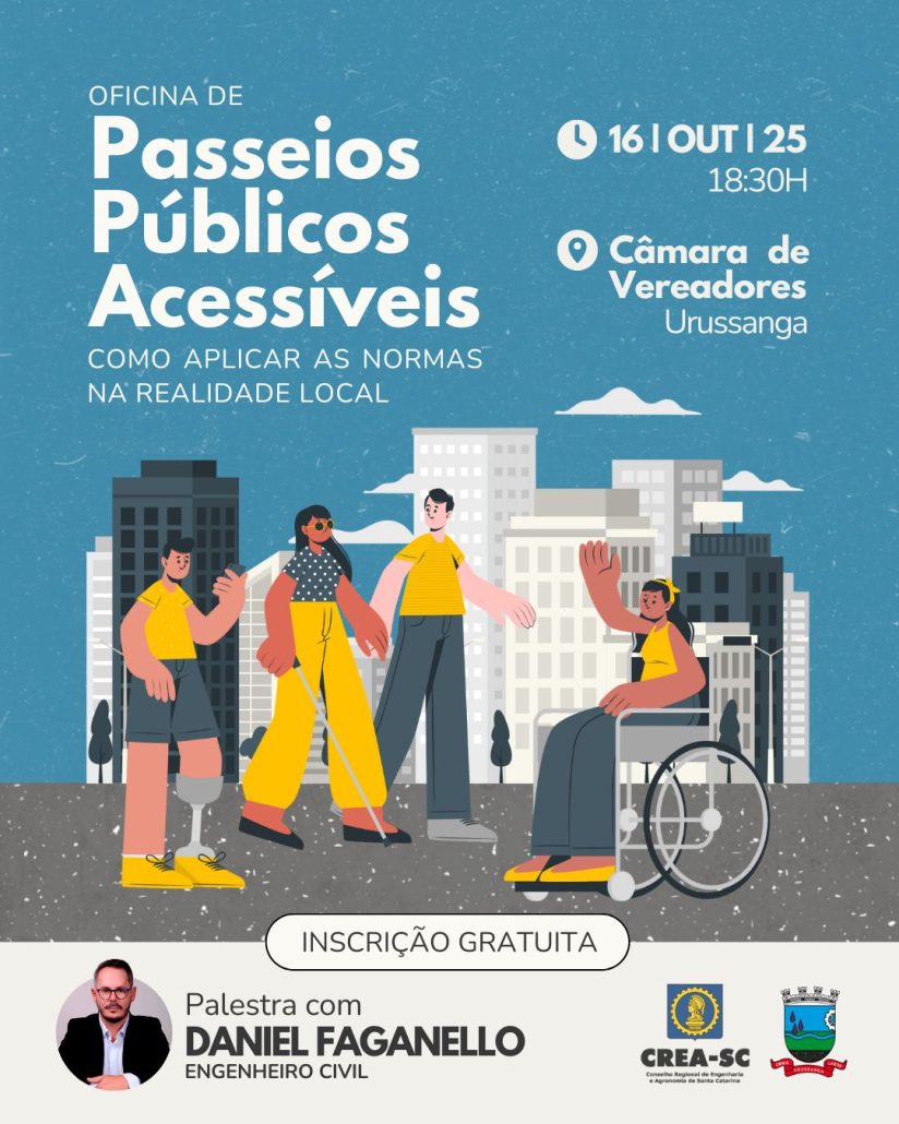 19:15H | Palestra: “Passeios Públicos Acessíveis” – Com Eng. Civil Daniel Faganello