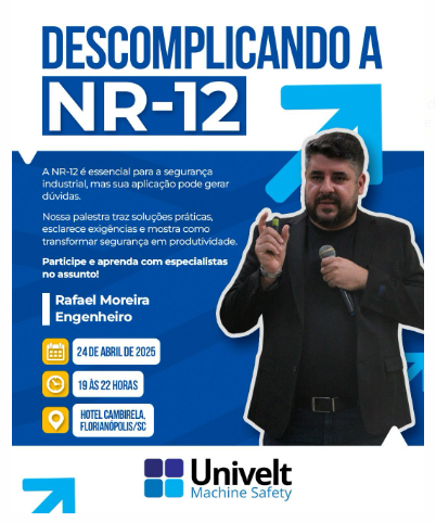 Palestra “Descomplicando a NR 12”, um evento gratuito para profissionais da indústria que desejam compreender e aplicar a Norma Regulamentadora NR12 de forma prática e eficiente.