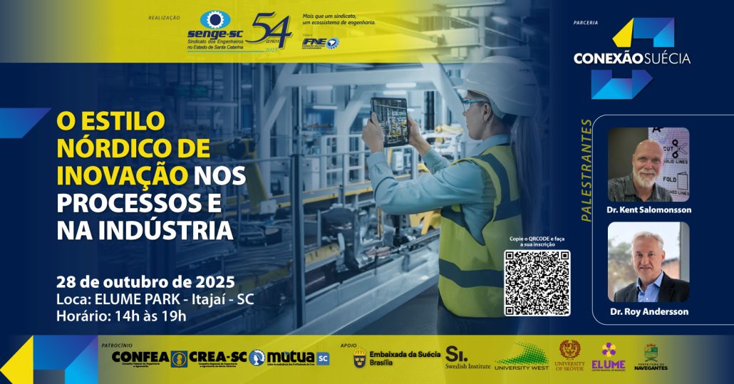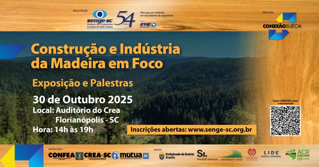 Entre os dias 28 e 30 de outubro de 2025, Santa Catarina recebe a Semana Conexão Suécia, promovida pelo Sindicato dos Engenheiros de Santa Catarina (Senge-SC). O evento tem como objetivo principal promover a troca de experiências em inovação, sustentabilidade e processos industriais, com atenção especial à indústria da madeira e às práticas industriais.