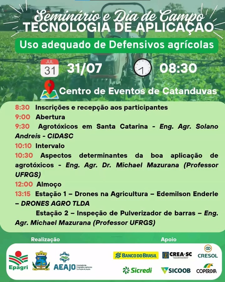 Dia 31 de julho, no Centro de Eventos de Catanduvas-SC, com o apoio do Crea-SC e outras entidades.