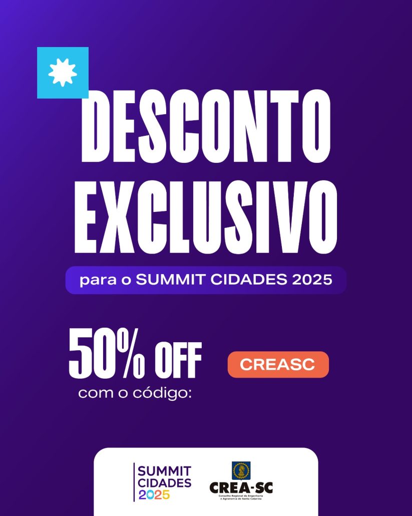 O Crea-SC tem desconto exclusivo de 50% off, utilizando o código: CREASC.