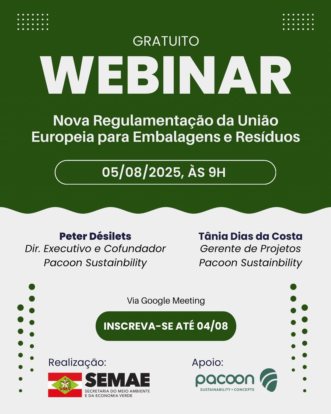 Mais INFORMAÇÕES e INSCRIÇÕES em https://www.even3.com.br/Webinar-PPWR-605897. Inscreva-se até 04/08.