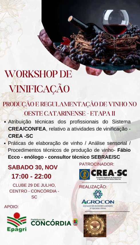 Workshop de Vinificação – Produção e Regulamentação de Vinho no Oeste Catarinense – Etapas I e II
