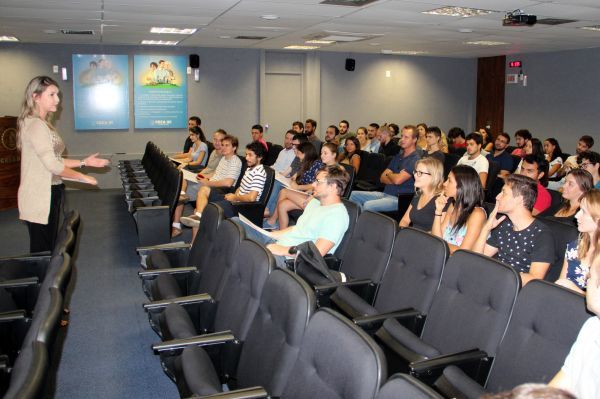 A assessora de relações institucionais do CREA-SC, Eng. Civil Caroline Burtet ministrou a palestra abordando temas como legislação e ética profissional, registro profissional e mercado de trabalho, estrutura e papel do CREA-SC como autarquia publica federal que regulamenta e fiscaliza o exercício profissional nas áreas da engenharia e agronomia, entre outros. Os alunos que participaram da palestra terão direito a 90% de desconto na primeira anuidade.