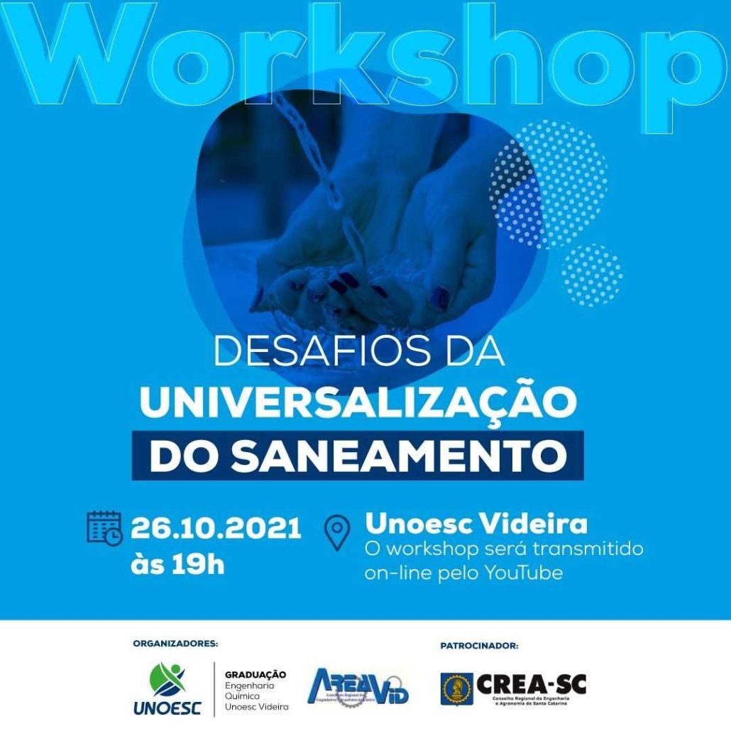 O déficit de esgotamento sanitário no Brasil ainda é um tema bastante preocupante. A boa notícia é que em 2020, foi aprovado o novo marco legal do saneamento básico, que prevê a universalização dos serviços de esgotamento sanitário, até 2033. Para manter os profissionais das engenharias e arquitetura atualizados sobre este tema, incluindo as demandas profissionais que devem surgir, a AREAVID – Associação de Engenheiros Arquitetos de Videira e a Espaço Unoesc Videira, por meio do Curso de Engenharia Química promovem o Workshop “Desafios da Universalização do Saneamento”. A iniciativa conta com o patrocínio do Crea-Sc que tem investido em todo o Estado no aperfeiçoamento, valorização e aprimoramento do exercício, da regulamentação e das políticas públicas relacionadas às profissões abrangidas pelo Sistema Confea/Crea.