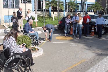 O grupo avaliou o prédio da Prefeitura Municipal e as instalações do Pró-Cidadão, de acordo com um check list previamente elaborado. Entre os aspectos de acessibilidade analisados estavam as condições de vagas de estacionamento, comunicação horizontal e vertical entre as instalações e a existência de sanitários adaptados.