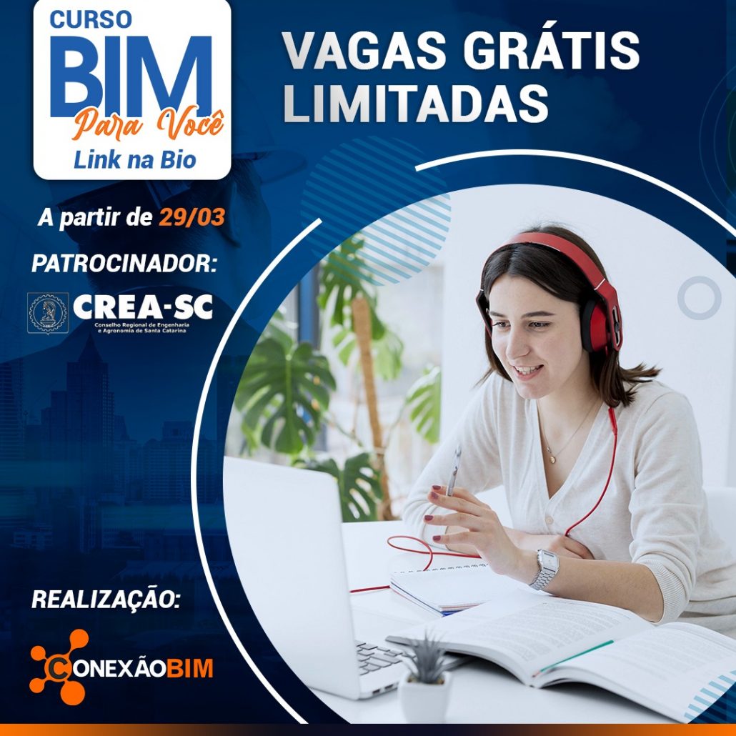 Com o apoio do CREA-SC por meio da Política de Patrocínio e idealizado pela Conexão BIM, o curso “BIM para você” será realizado em modelo EAD, com quatro módulos. As aulas serão colocadas à disposição dos participantes sempre nas segundas-feiras e ficarão gravadas. Ou seja, o aluno poderá assistir onde e quando puder.