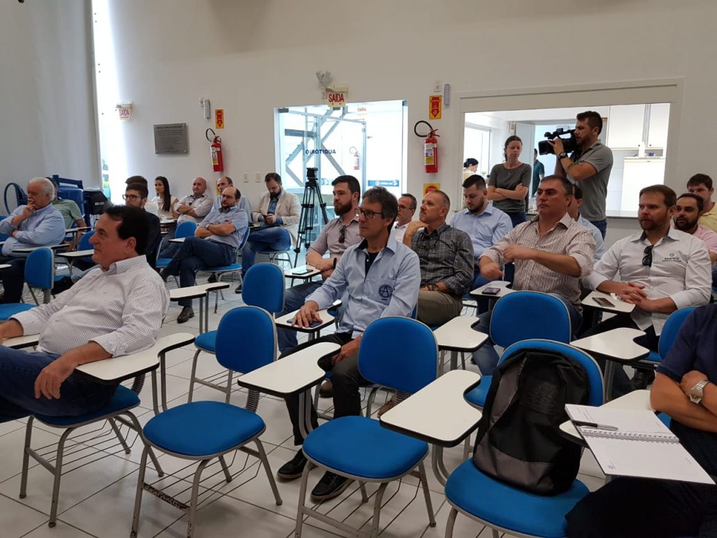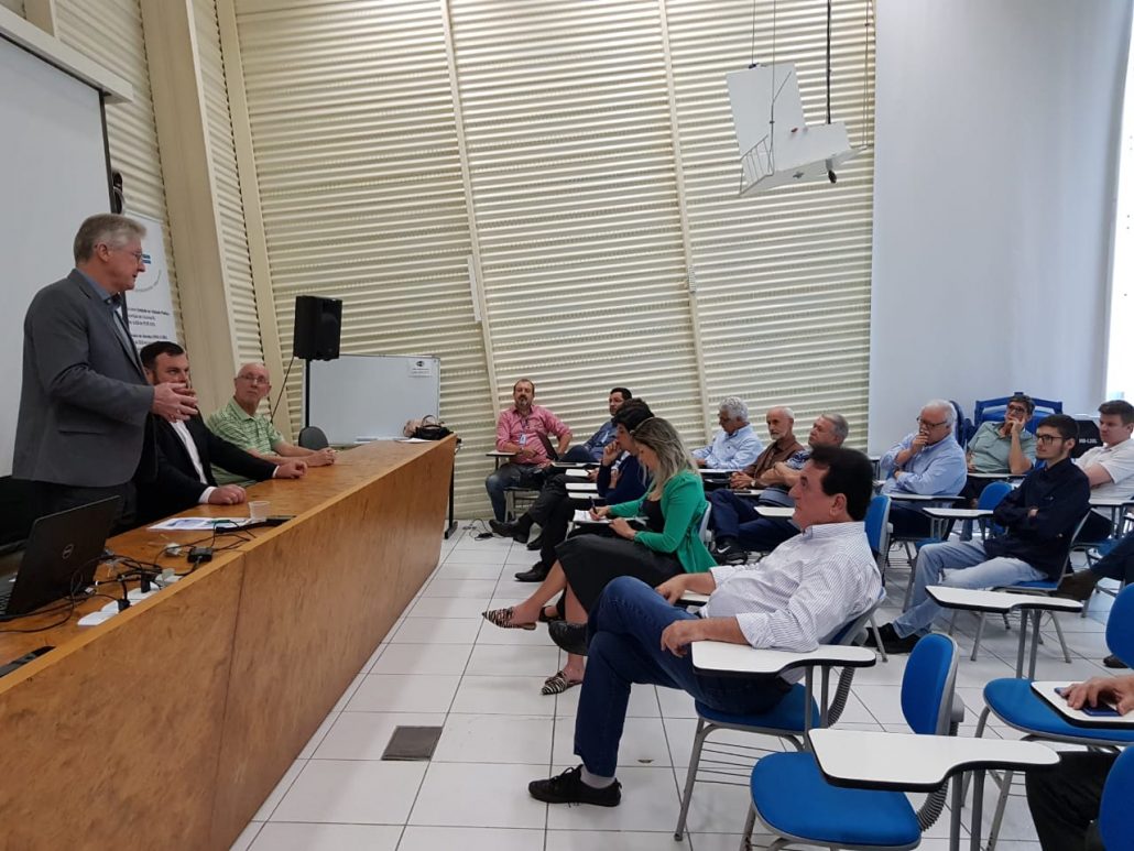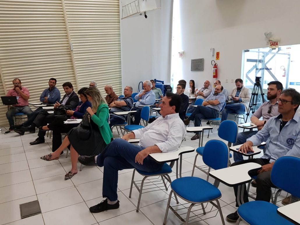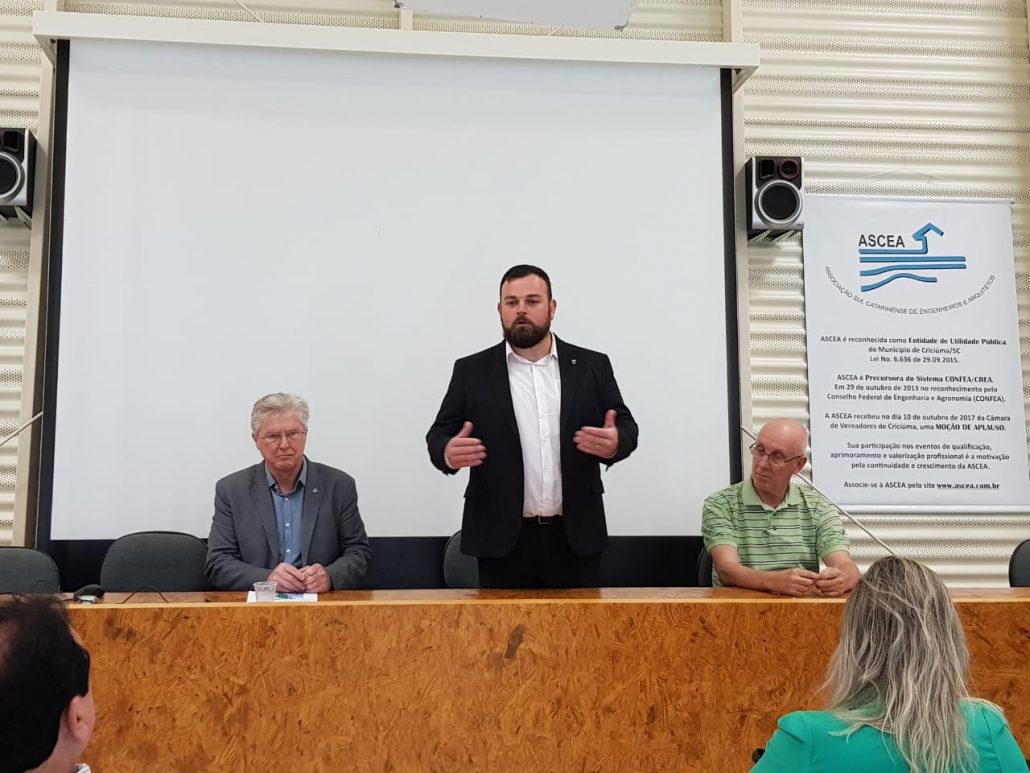 Presenças do presidente Eng. Agr. Ari Geraldo Neumann, do diretor regional de Criciúma, Eng. Amb. Ingo Eugênio Dal Pont Werncke e do diretor financeiro, Eng. Eletric. Evânio Ramos Nicoleit. Também participam profissionais, representantes das entidades de classe, conselheiros, assessores, gerentes e colaboradores do CREA-SC.