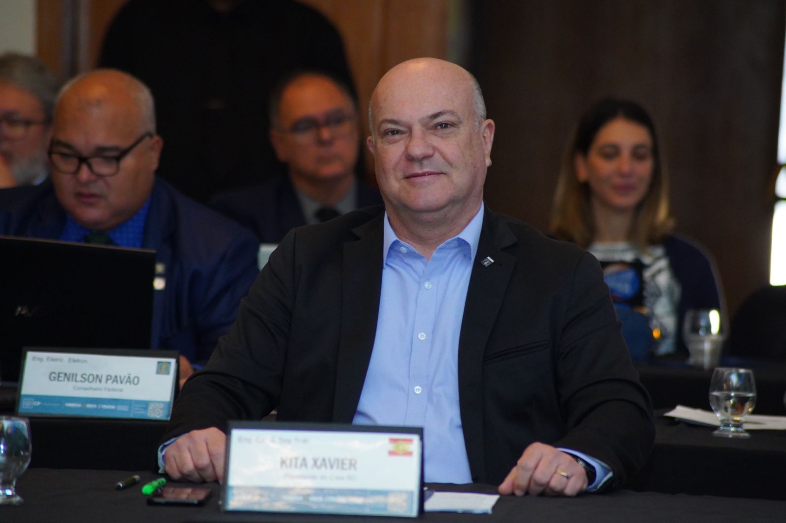 Durante a reunião do Colégio de Presidentes, algumas lideranças estaduais tiveram a oportunidade de compartilhar com os demais presentes as boas práticas adotadas em seus Creas. Dentro da temática inovação, o presidente do Creas-SC, eng. civ. de seg. do trab. Kita Xavier, anunciou o Crea Summit, que acontece nos dias 6 e 7 de julho. O presidente também destacou ações importantes do Conselho catarinense como a Política de Patrocínio, que irá investir R$ 4 milhões a eventos e publicações técnicas que promovam a inovação, atualização e a geração de conhecimento técnico científico de interesse da Engenharia, da Agronomia e Geociências. Falou também sobre a Unicrea – universidade corporativa do Conselho e os novos espaços de Coworking nas cidades de Florianópolis, São José, Joinville e Lages em parceria com a Acate e Orion Park.