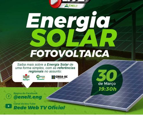 Live Energia Solar Fotovoltaica acontece dia 30 de março via Google Meet