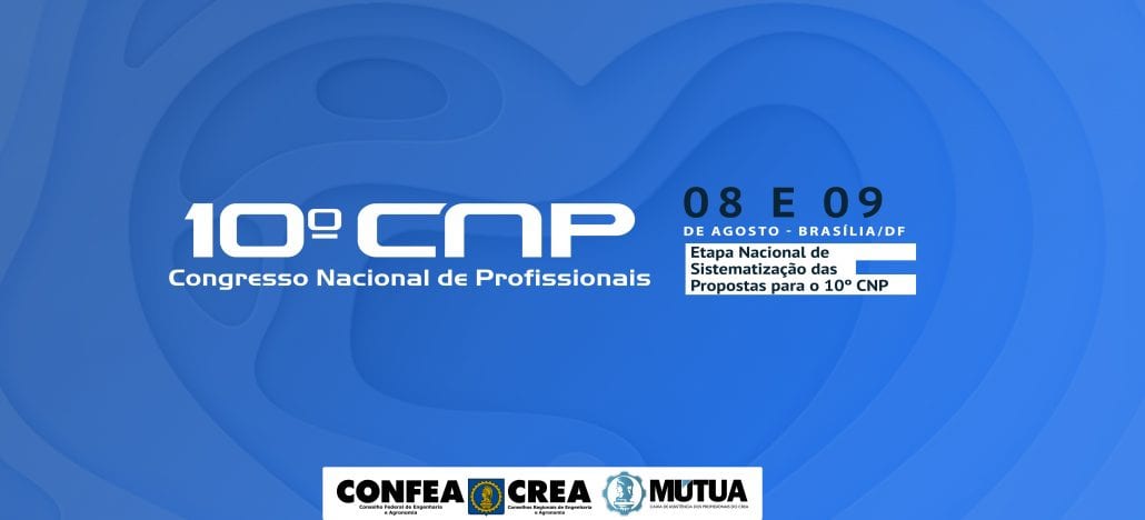 Nos dias 08 e 09 de agosto, será realizada em Brasília (DF), a etapa de Sistematização Nacional das propostas para o 10º Congresso Nacional de Profissionais (CNP).O Congresso Nacional de Profissionais (CNP) é um fórum organizado pelo Confea, apoiado pelos Creas e pelas entidades nacionais, que tem por objetivo discutir e propor políticas, estratégias e programas de atuação, visando à participação dos profissionais das áreas abrangidas pelo Sistema Confea/Crea no desenvolvimento nacional, propiciando maior integração com a sociedade e entidades governamentais