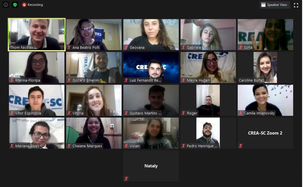 A abertura do encontro que aconteceu por videoconferência, contou com a participação do presidente do CREA-SC, Eng. Agr. Ari Geraldo Neumann, da Engª Civil e Seg. Trab. Endriana Kischner Cavalheiro, coordenadora da Comissão Creajr e do coordenador do CDR, Eng. Civil Dieter Neermann. Também participaram a assessora de apoio às instituições de ensino do CREA-SC, Engª Civil e Seg. Trab. Caroline Burtet, o acadêmico Thom Nicolas Wruck, coordenador estadual do CREAjr-SC, além dos coordenadores regionais.