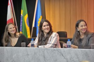 As palestras da noite foram da engenheira Dr. Marina Celant De Pra, responsável pelo desenvolvimento do reator para tratamento de efluentes nas estações espaciais NASA, e da Engª Ambiental Nanci Walter, que falou sobre a importância da presidente à frente de um Conselho profissional.