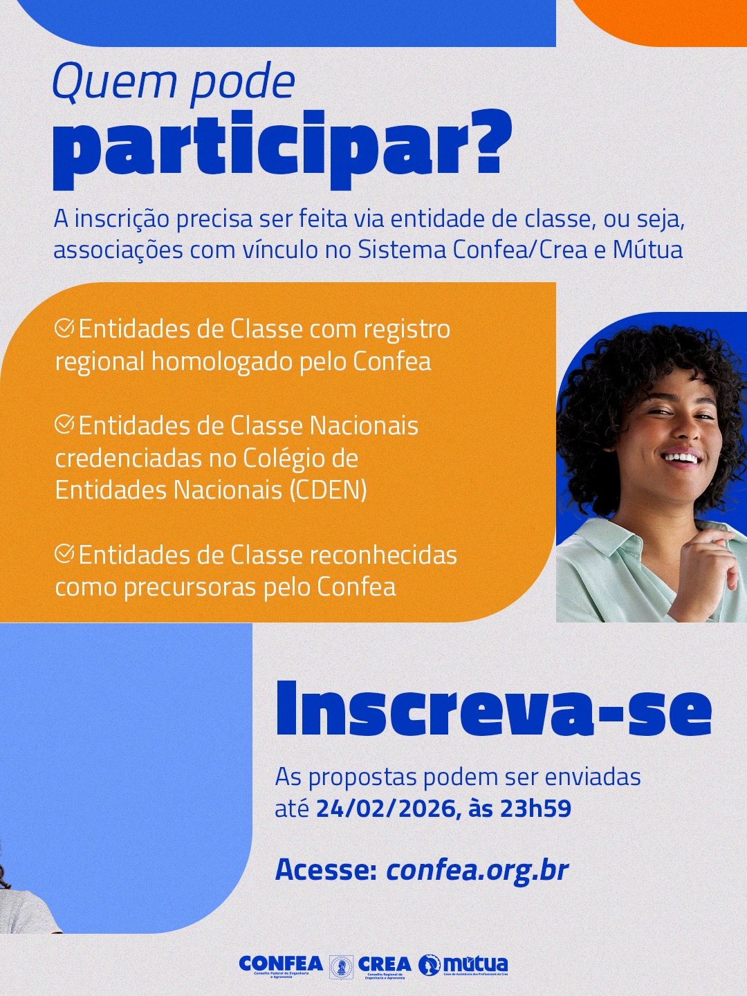 As propostas devem ser cadastradas até 23h59 do dia 24 de fevereiro de 2026, pela plataforma oficial do Confea.
