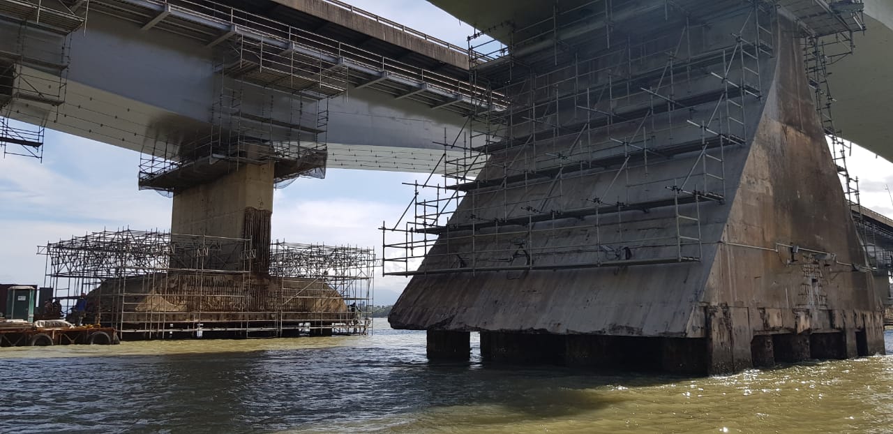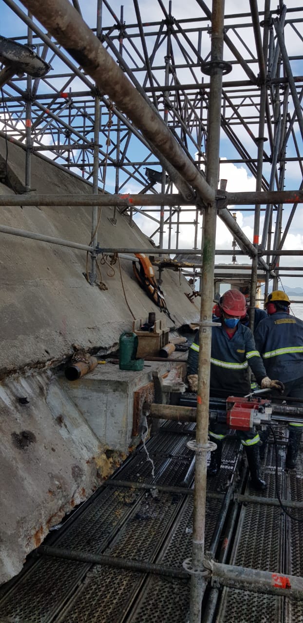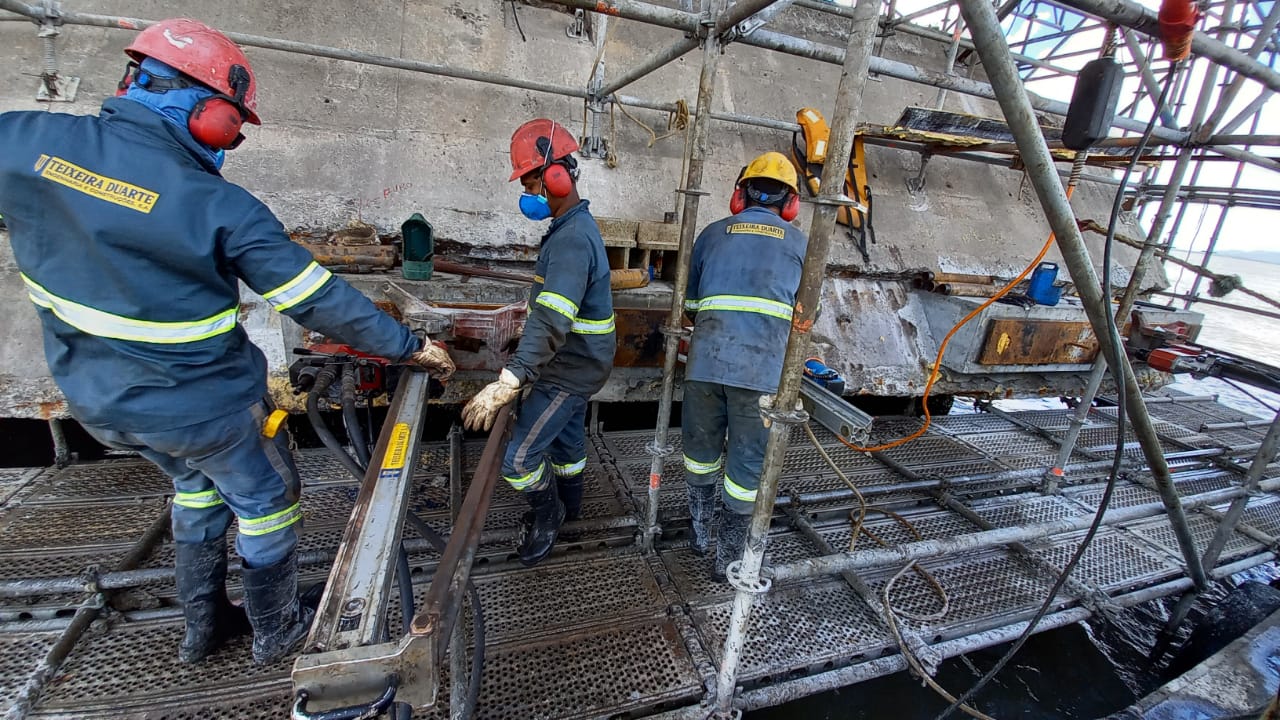 Segundo o agente fiscal do CREA-SC, Eng. Prod. Civil Gabriel Alba da Silva, o prazo de execução da obra é de seis meses para recuperação dos seis blocos de coroamento que fazem parte do escopo contratado, através de sistema de protensão com barras DYWIDAG. Atualmente quatro blocos já foram concluídos e dois ainda estão em andamento, com aproximadamente 60% e 20% já concluídos, com previsão de término total das atividades até 27 de novembro de 2020. Foram verificadas ARTs das atividades envolvendo as áreas da Engenharia Civil, Mecânica e de Segurança do Trabalho.