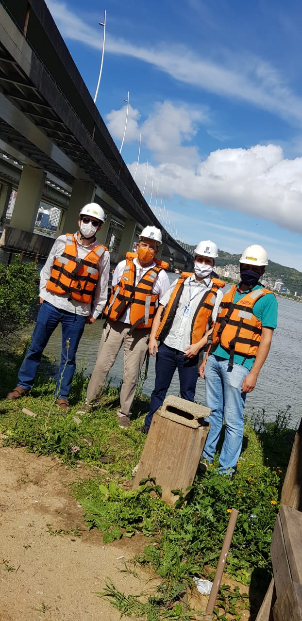 Participaram da fiscalização o agente fiscal do CREA-SC, Eng. Prod. Civil Gabriel Alba da Silva; o conselheiro do CREA-SC, presidente da Associação Catarinense de Engenheiros e membro do Grupo de Trabalho de Manutenção Periódica das Pontes, Eng. Civil Roberto de Oliveira; o Eng. de Produção Mecânica Edson Luiz Valandro, responsável técnico e o Eng. Mec. Clovis Reis Júnior, da Teixeira Duarte Engenharia e Construções S.A