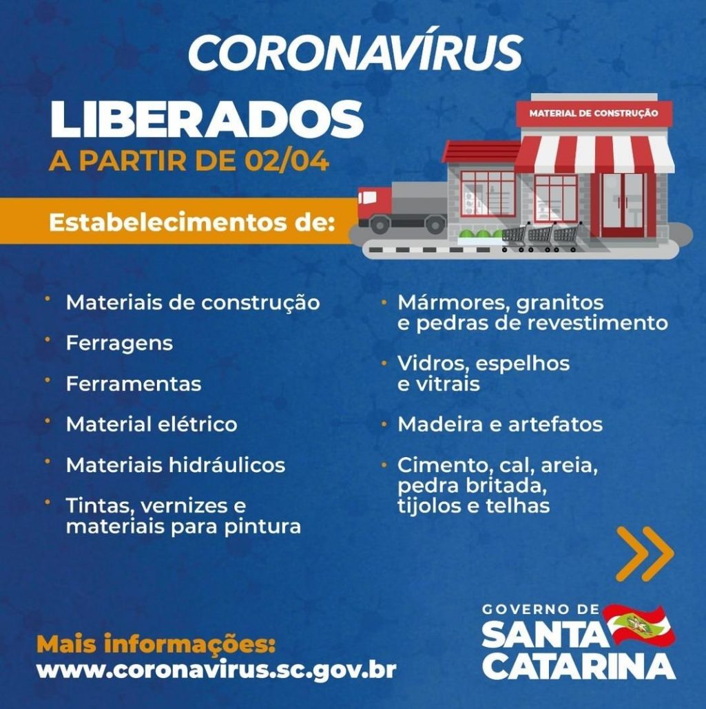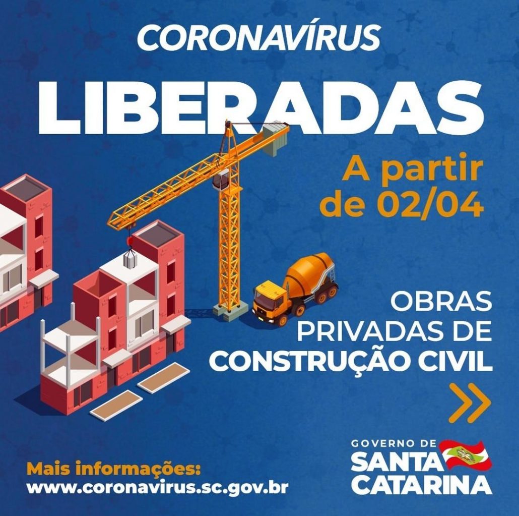 O Governo do Estado por meio da portaria 214, publicada no Diário Oficial, determinou a retomada do setor da construção civil privada e toda a sua cadeia produtiva em Santa Catarina, a partir de hoje, 2 de abril.