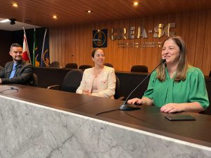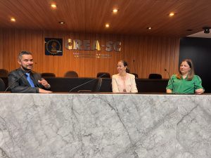 Na quinta-feira (31.08), o encontro contou com a participação da presidente em exercício do CREA-SC, Eng. Sanit. Amb. e Seg. Trab. Fernanda Maria Felix Vanhoni, no auditório do Conselho, com a apresentação das principais serviços, ações e programas do Conselho destinados aos profissionais, empresas, entidades de classe e instituições de ensino da área tecnológica do estado.