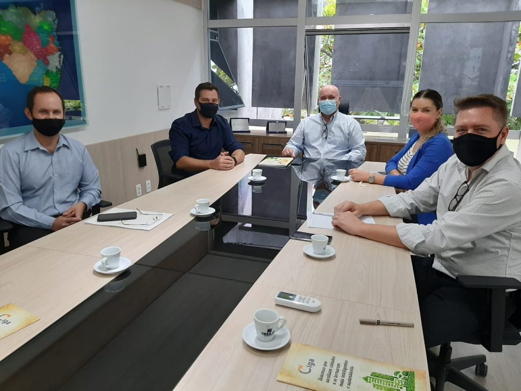 O encontro aconteceu na sede do Conselho em Florianópolis. Participaram o presidente do CREA-SC, Eng. Civil e Seg. Trab. Carlos Alberto Kita Xavier; o assessor de relações institucionais, Eng. Civil Flávio Schafer; a assessora de apoio às instituições de ensino, Eng. Civil e Seg. Trab. Caroline Burtet; o presidente do CIGA e também prefeito de Campos Novos, Silvio Alexandre Zancanaro; e o diretor executivo do CIGA, Gilsoni Lunardi Albino.