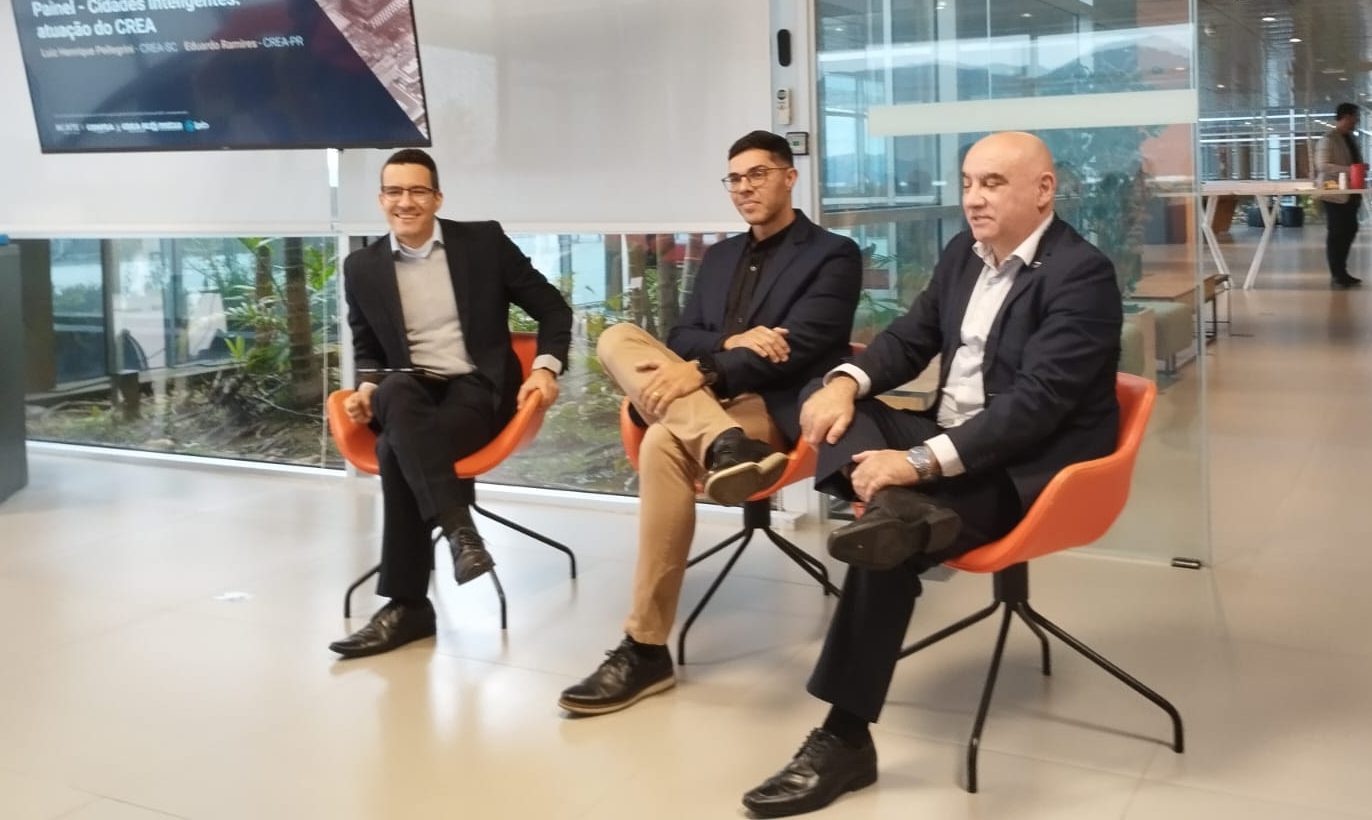 Destaque para a palestra sobre “Cidades Inteligentes: Atuação do CREA”, apresentada pelo superintende do CREA-SC Eng. Luiz Henrique Pellegrini e pelo Eng. Eduardo Ramires do CREA-PR.