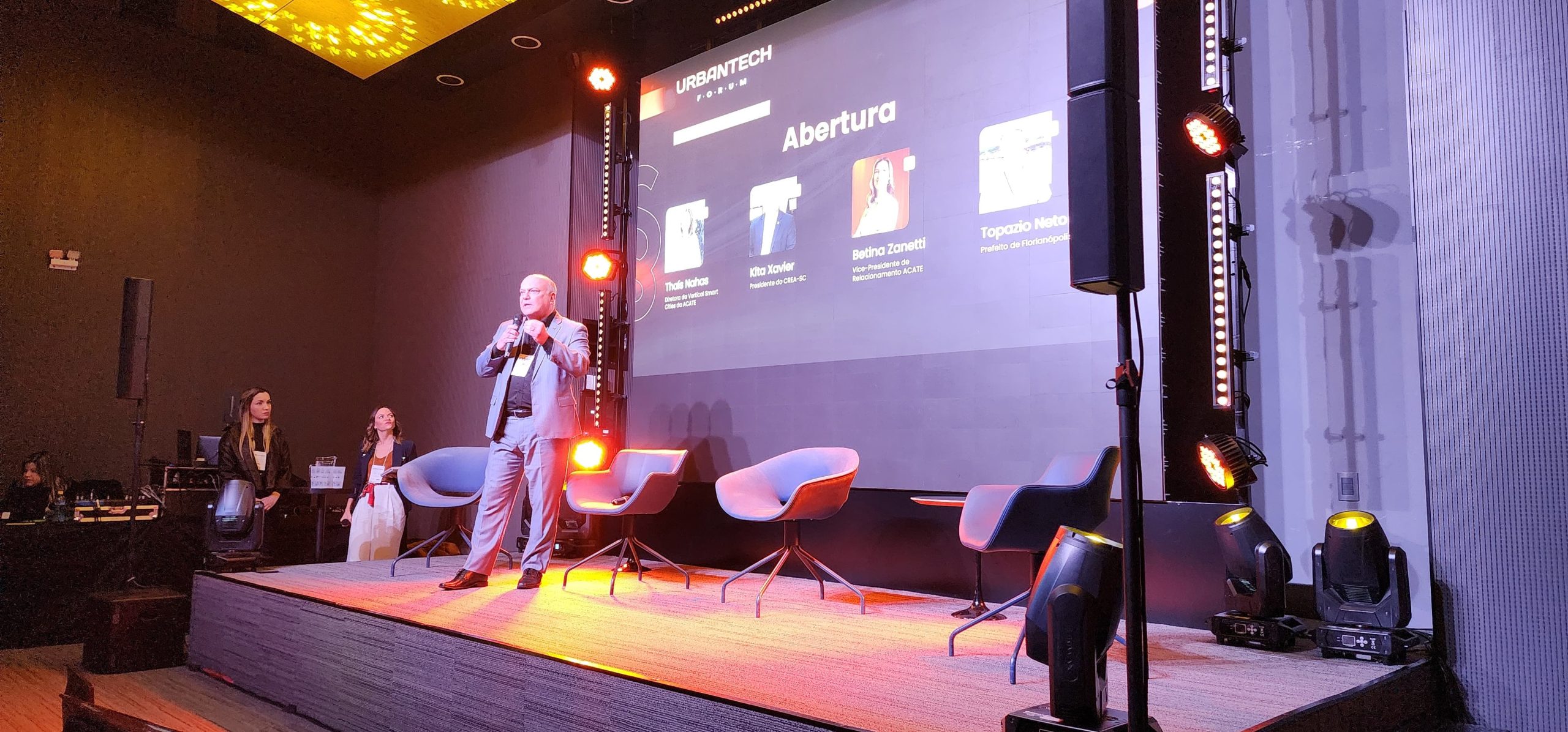 À tarde, o Urban Tech Forum teve como objetivo catalisar inovações tecnológicas para o desenvolvimento urbano. O evento debateu sobre transformação digital no governo, mobilidade sustentável, turismo e sustentabilidade urbana. Participação do gestor de TI do CREA-SC, Lucas dos Santos, na trilha Transformação Digital.