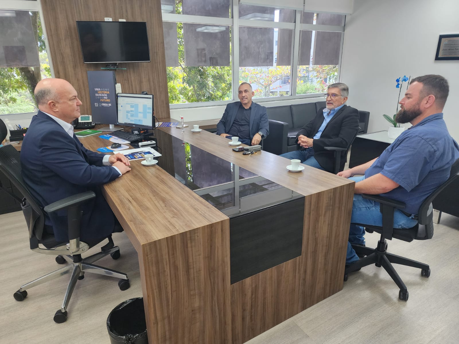Na manhã da última terça-feira, 25, o presidente do Crea-SC, Eng. Civil e Seg. do Trab. Kita Xavier recebeu em seu gabinete na sede do Conselho, em Florianópolis, o gerente regional da Agência Nacional de Mineração (ANM-SC), Jesse Otto Freitas e o conselheiro e coordenador do convênio nacional ANM e Confea, Eng. de Minas Rodrigo Luiz do Carmo Souza. O gerente da fiscalização do Crea-SC, Eng. Amb. Ingo Eugênio Dal Pont Werncke, também esteve presente na reunião.