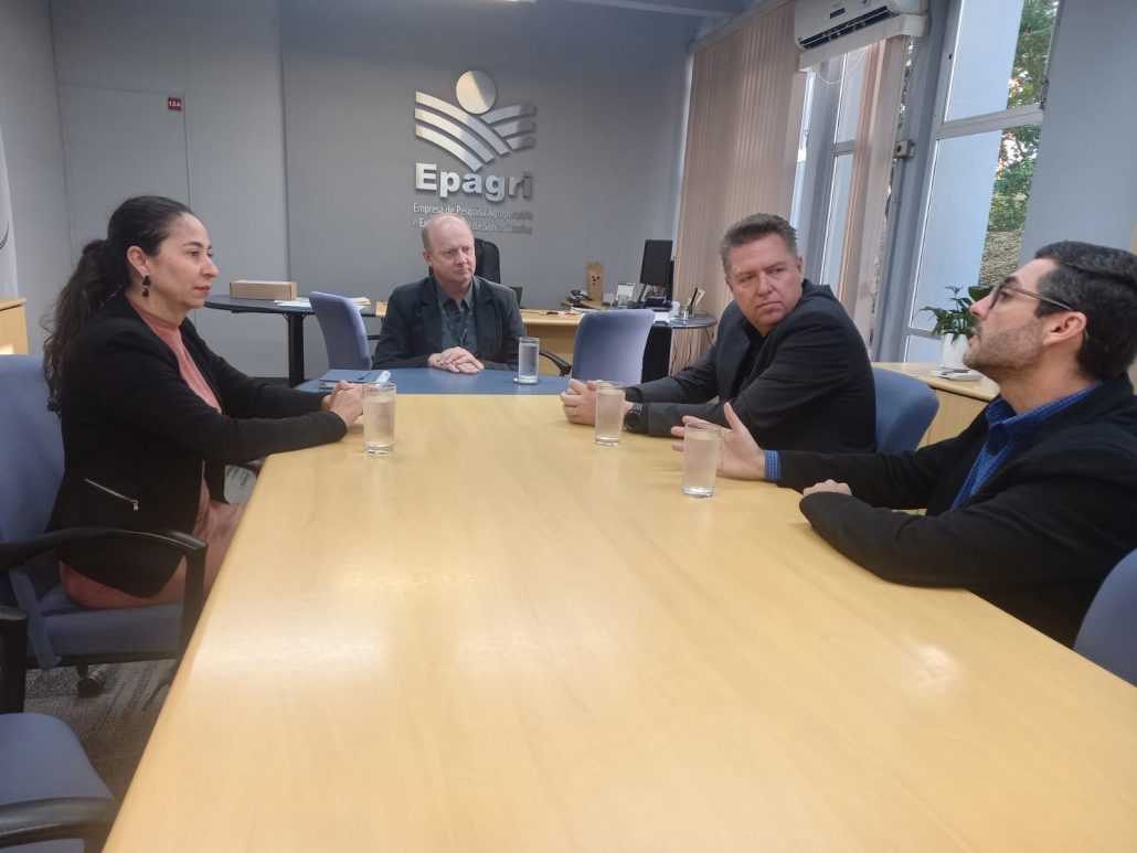 A presidente em exercício do CREA-SC, Eng. Sanit. Amb. e Seg. Trab. Fernanda Maria Felix Vanhoni esteve em audiência na tarde desta quarta-feira com o presidente da Epagri, Eng. Agr. Dirceu Leite.